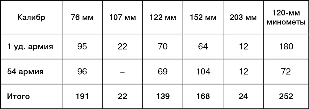 Проделанная работа по выявлению ресурсов рядового и сержантского состава (и использование контингента, выздоровевшего в госпиталях, всего 13 875 человек) в период подготовки к операции дала возможность довести две дивизии до 6000 состава, что составляло к общему числу дивизий 8 %, семь дивизий до 5000 состава, или 28 %, и шестнадцать дивизий до 4000, или 64 %.