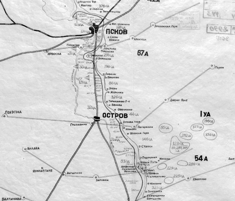 Ударная группировка 3-го Прибалтийского фронта, 1-я ударная и 54-я армии, получила значительное количество средств артиллерийского усиления. Они включали 8 артиллерийских бригад, до 20 артиллерийских полков, 2 минометные бригады, 8 минометных полков, 2 гв. минометные бригады и 4 гв. минометных полка (2, л. 11).