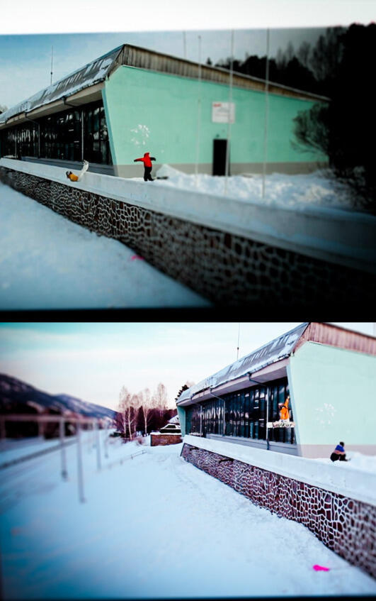 У меня было всего 2 попытки там. Или 3. Первая эпичный бланш через забор. Потому что с плоскостью рассчитать не получилось и вместо волрайда я цепанула стенку кантом. А так как скорость была большая (из-за лебедки), то меня выкинуло прямо на этот бетонный забор. Я зацепилась за него доской и вот, уже лечу спиной вперед в эту пропасть-дроп. Делаю сальто назад с раскрытыми руками и обнаруживаю, что сижу на снегу, как кукла. Проверяю все окей, ничего не болит, я в сознании. Офигеваю вместе со всеми, поднимаюсь обратно на разгонку. Только потом на видео я поняла, как это было опасно, и как страшно смотрелось.