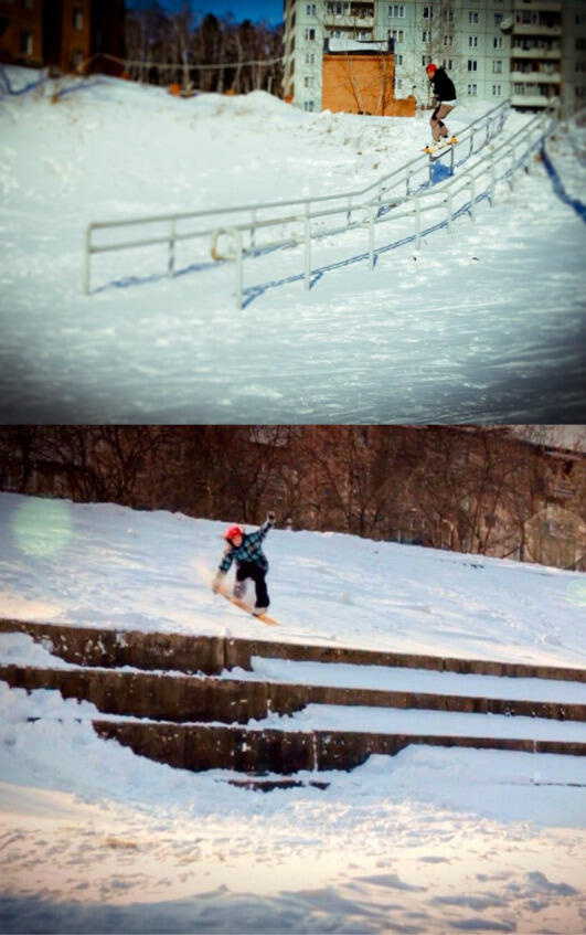 Еще один раз гоняли рейл с разгоном за машиной. Это еще жестче, чем банджа. Вообще непонятна скорость разгона, нестабильное ощущение. Такой пристрелочный спот перила со сходом в метровый дроп. Это уже гоняли с Яной. А еще с ней же прыгали и самостоятельно снимали дроп с 4 высоких ступеней на набережке в Дивном.
