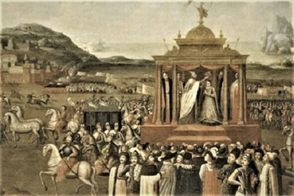 Въезд М. Мнишек со свитой в Москву 3 мая 1606 г. Неизвестный художник. XVII в.