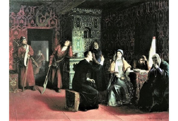 Марина Мнишек с отцом под стражей (После погрома). Худ. Клодт фон Юргенсбург. 1883 г.