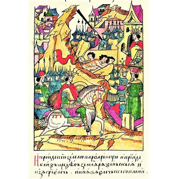 Господи, благослови, отче! В 6903 (1395) году, во время княжения благоверного и христолюбивого великого князя Василия Дмитриевича, самодержца Русской земли Пришел некий царь Темир Аксак из восточной страны, из Синей Орды, из Самаркандской земли, большую войну затеял, много мятежей он поднял в Орде и на Руси своим приходом.