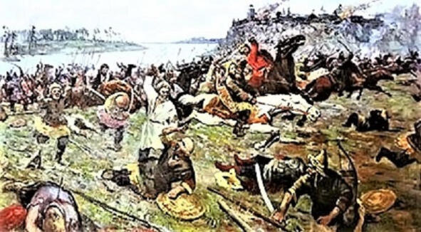 Ельчане в битве с полчищами Тамерлана. Худ. И. Г. Мишин