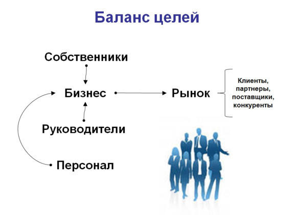 У представителей одной и той же группы схожие цели и намерения, которые они пытаются осуществить посредством организации. И такую возможность организация должна им предоставить, иначе они, в свою очередь, перестанут выполнять свои функции по отношению к организации, что приведет либо к ее гибели, либо к существенному подрыву эффективности бизнеса. Ни то, ни другое никому не интересно. Стало быть, необходимо искать баланс целей различных групп влияния, заинтересованных в существовании и деятельности организации.