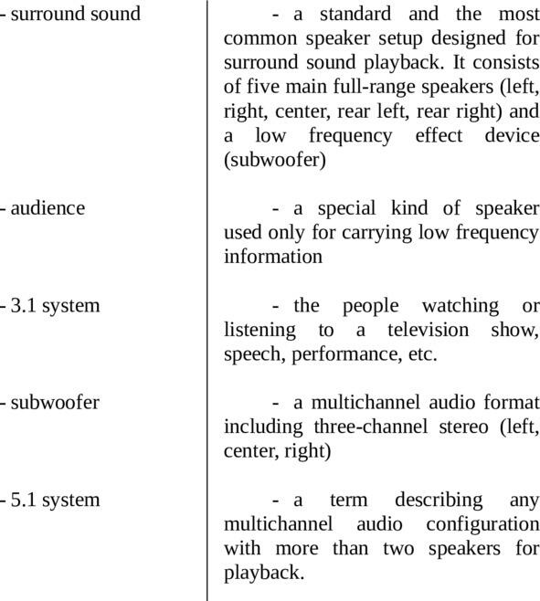 12. All the terms in the left column below are mentioned in text 1. Match the terms with their definitions in the right column.