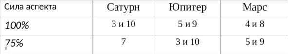 У последующей планеты аспект уменьшает свою силу на четверть.