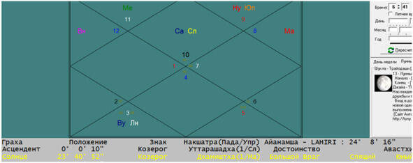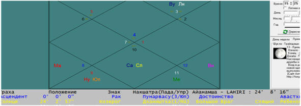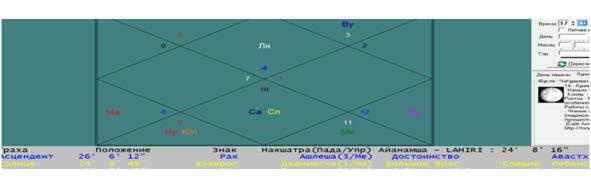 градус Солнца- 23*43*43* и получим 00*00*05* градус лагны карты, которая будет верной для предсказания судьбы этого малыша.