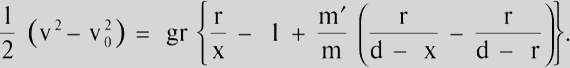Это значит, ответил Николь, что одна вторая V в квадрате минус V нулевое в квадрате равно gr, помноженное на r, деленное на х, минус единица плюс m прим, деленное на m, умноженное на r, деленное на d минус х, минус r, деленное на d минус r