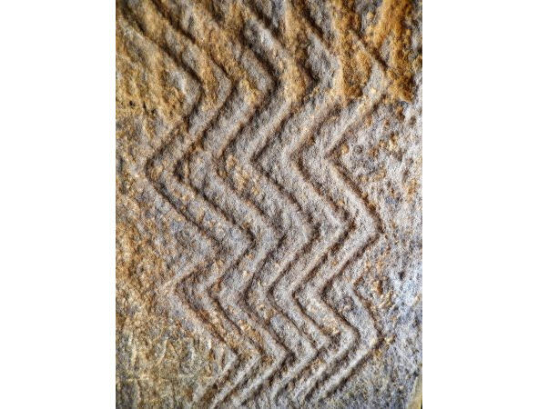 На внутренних стенках одного дольменов нанесены зигзагообразные линии (археологи называют их «ёлочками» и «знаками воды»). Анализ показывает, что здесь присутствуют зигзаги трёх видов: с шагом 5, 10 и 12,5 см.