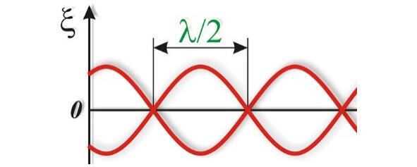 расстояние между двумя узлами или между двумя пучностями равно половине длины волны, а расстояние между пучностью и узлом равно четверти длины волны;