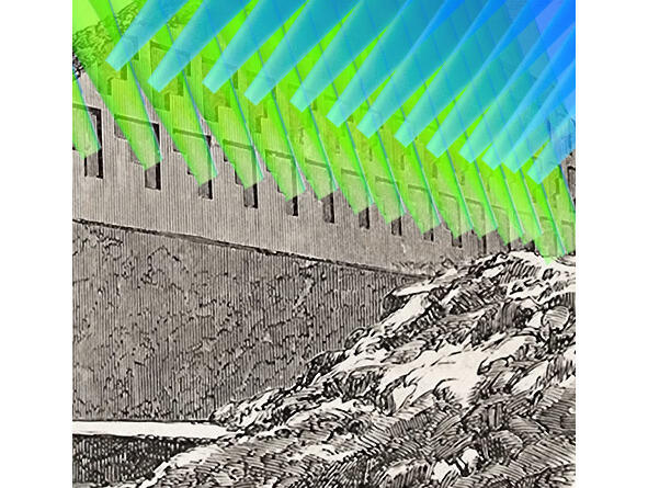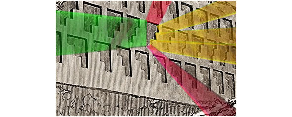 Если в других случаях, например от взаимно перпендикулярных ступеней вибрации, завихрения и торсионное поле формировались воздействием биений волн и фигур Лиссажу, что приводило к поляризации в одной плоскости и, как результат, к эффективному формированию вибраций. Здесь же применен совершенно иной принцип формирования завихрений сразу несколько ниш, как минимум три пять, расположенные в шахматном порядке с перевернутыми ступенями друг относительно друга, приводят к формированию зоновой области завихрений, значительно большей области воздействия. Таким образом такая каменная стена при внешнем воздействии обладает свойствами левитационного воздействия на объект в виде мегалита существенного размера и веса. Далее, так как стена длинная с непрерывно расположенными нишами, то внешний объект, например, мегалит, может перемещаться вдоль неё на всю длину этой стены.