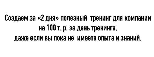 создаем за «2 дня» полезный тренинг для компании на 100 000 руб. за день тренинга, даже если вы пока не имеете опыта и знаний.