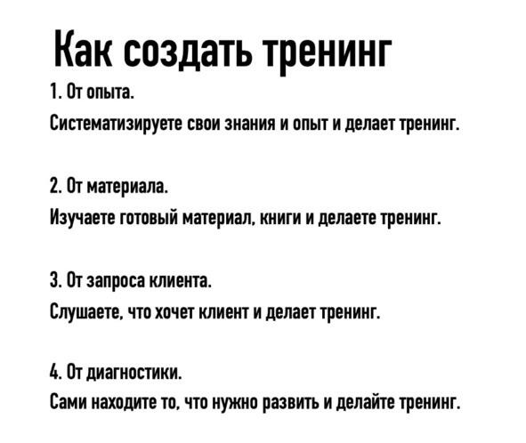 как создать тренинг. давайте посмотрим на большую картину этого процесса, откуда вообще может взять тренинг, как он может появиться или как вы можете его делать:
