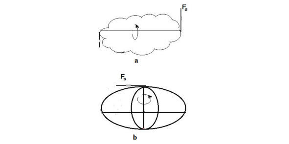 а переворот тела небольшой массы под действием результирующей силы в направлении своего движения по силовым нитям пространства. b начало вращения Солнца. Fs результирующая сила