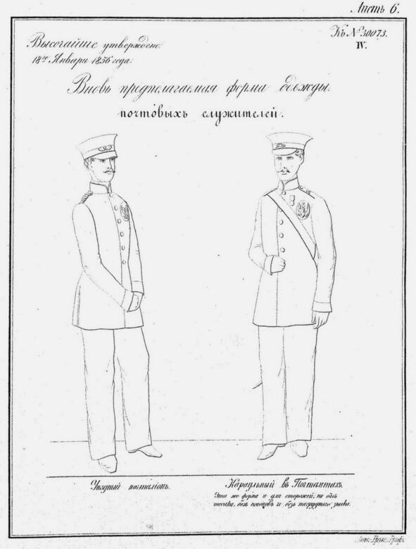 Форма одежды почтового служащего. Утверждена 1856 г.