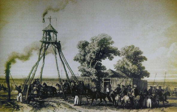 Художник Адель Оммер де Гель. Казачий пост, 40-е годы XIX в.