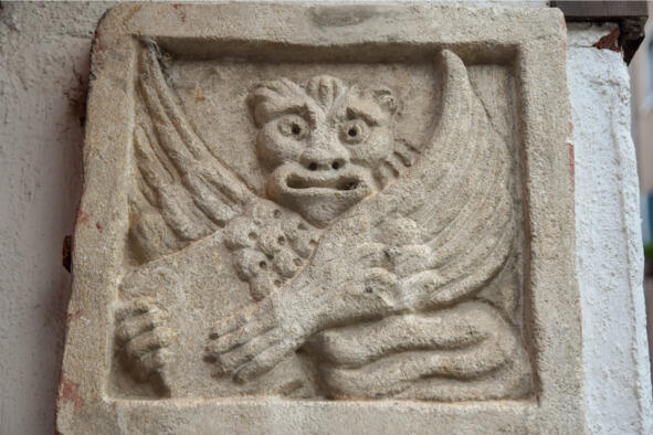 Однако их, безусловно, больше. К примеру, выводящая к церкви улочка Campo dei Mori славится горельефами братьев Мастелли (Mastelli), занимавшихся торговлей шелком и специями, но превращенных в камень святой Магдалиной в наказание за обман. Там же, со стороны канала Madonna dellOrto, на фасаде дома, некогда принадлежащего незадачливым братьям, знак торговцев: барельеф с навьюченным поклажей верблюдом и погонщиком в чалме.