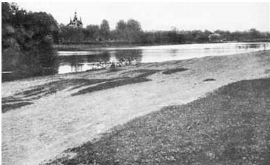 Вид на храм со стороны архиерейского пруда. Конец XIX в.
