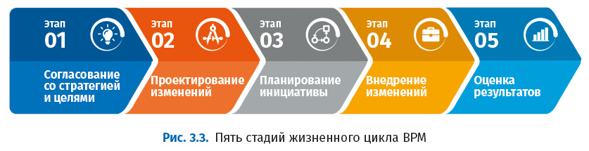 Большинство вариантов жизненного цикла BPM включают следующие стадии: