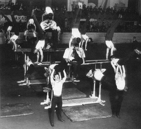 Гимнастические упражнения спортсменов общества «Сокол» в Михайловском манеже. 1911 г. Фотограф Карл Булла