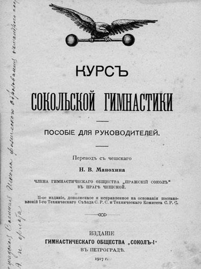 В начале XX в. сокольство возникло и в России. Его принесли чешские преподаватели гимнастики. Сперва никто не знал еще об их принадлежности к сокольству, и их воспринимали только как опытных руководителей физического воспитания в учебных заведениях. Они собирали вокруг себя кружки любителей физических упражнений, которые вначале не носили названия сокольских: в Москве Первое русское гимнастическое общество, в Петербурге гимнастическое общество «Север». В 1908 г. на базе последнего основали сокольский центр.