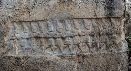 Las montañas dedicadas al dios solar y al dios de la tormenta, como Düzgün Baba (padre) son representadas con la imagen de un toro llevando el sombrero hitita (en forma de cono).45