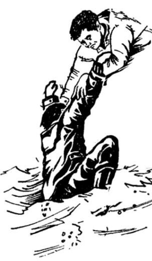 Для меня, как для солиста на этой сцене, решение о собственном спасении сформировалось сразу же по выныриванию на поверхность спустить за борт на веревке бойца с верёвкой, которой тот меня обвяжет, после чего поднимают бойца и следом меня. Но у собравшихся на палубе представителей разных сословий доблестного Военно-морского флота на эту проблему было своё видение. Всё ещё обиженно подвывавший дежурный боцман был обвязан проводником подмышками и отправлен за борт. Благополучно достигнув пневмокранца, он встал на его покатую поверхность, перегнулся вниз и голыми руками при минус 45 градусах этого самого изверга Цельсия схватил меня за воротник обледеневшей куртки «полушерстяной офицерского состава», как это пишется в ведомостях вещевого довольствия. «Попингуд ты некалиброванный!» тоскливо подумалось мне. А бацилла не думал он СПАСАЛ! «Тащи!» просипел согнутый в три погибели спасатель. «И раз! И раз!..» послышалось сверху. Это выстроившиеся в колонну по одному бойцы, под командованием Главного боцмана, начали рывками выбирать проводник с двумя организмами на другом конце. Сил бациллы-спасателя на удержание меня хватило только метра на полтора «Не могу!» выдохнул боец и разжал кисти рук. В последующем полёте уже не было ничего страшного ведь как говорил, кажется, Шиллер, а может быть, наш комбриг капитан 1 ранга Владимир Владимирович Амбарцумян: «Против человеческой глупости бессильны даже боги!» Отработанными движениями я добрался до кольца и опять принял эмбриональное положение, раздумывая о том, что ещё придумают мои спасатели. А наверху, на обледенелой морозной палубе виновато согнувшемуся боцману наперебой объясняли кто он такой, кем являются все его родственники до пятого колена включительно, обрисовывали перспективы его увольнения в запас «под ёлочку», а также различные варианты диагнозов его умственного состояния. Бацилла с позором был изгнан с верхней палубы и тут кто-то вспомнил обо мне: «Ёлы-палы, он там не утоп, случаем?» Примчался страстно желавший исправить свою вину командир артустановки 1 старшина 1 статьи Сироткин (он спрятал бутылку водки в лейнере ствола орудия и был лично мной взят за цугундер). «Меня вяжите, орал он, я своего родного командира БЧ за здравия желаю вытащу!». Добровольца обвязали и отправили в парящий туман. Сироткин недаром был старшина 1 статьи это практически корабельная аристократия и принял верное решение обхватить меня подмышками и соединить руки в замок на моей спине. Что он и сделал. «Тащи!» скомандовал комендор, со страстью прижимая меня к своей груди. «И раз! И раз!..» опять раздалось на палубе. «А счастье было так возможно!» В дело вступил доблестный начальник медслужбы капитан Кабисов Илюшенька, который, услышав, что тонет его кореш, немедленно развернул операционную на случай поступления раненых и поражённых (на крайний случай одного свежезамороженного), после чего решил принять личное участие в спасении. Илюша выскочил из тёплой амбулатории, взлетел по трапу в тамбур и вылетел на верхнюю палубу. А там продолжалось: «И раз! И раз!..» Илюша, растолкав толпу, ухватил проводник за свободный конец, встал последним в колонну тянущих и на очередное «И раз!» дернул на себя проводник. На насквозь промёрзшей стальной палубе Илюшины ноги в тропических тапочках на кожаной подошве проскользну