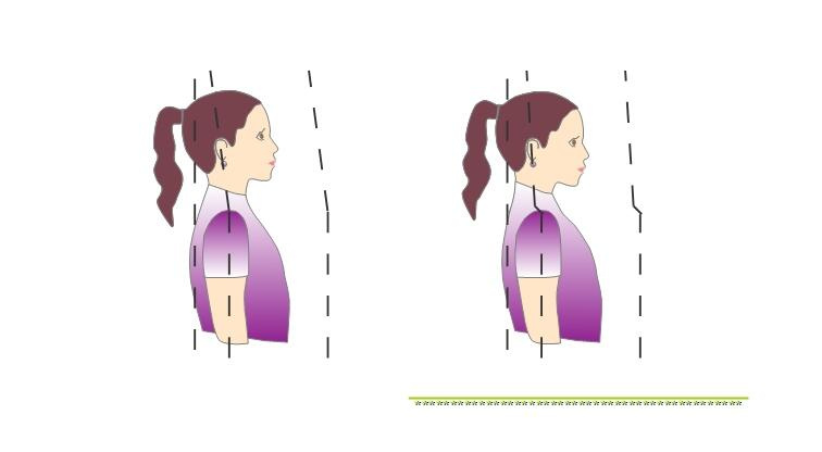 Голова находится в здоровой позиции, когда ухо и плечо находятся на одной вертикальной линии.