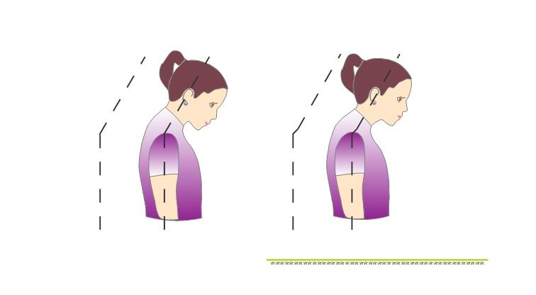 Восстанавливается прямая вертикальная линия плечо ухо, которая была наклонена вперед.
