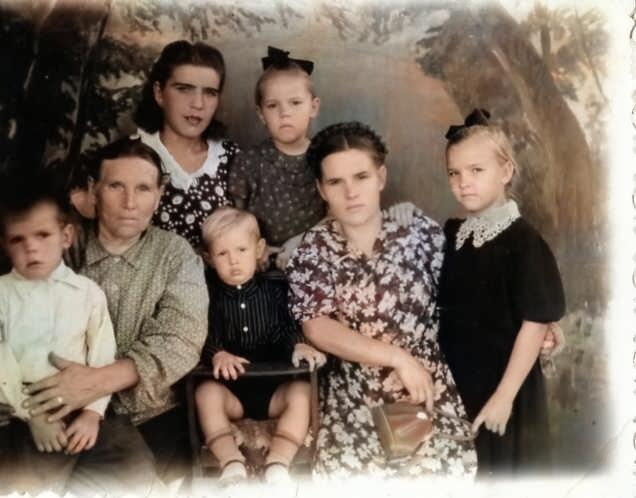 На фото я в центре. Мне 1 год. Бабушка, мать, её сестра Мария, мои сёстры и кузен Валерка