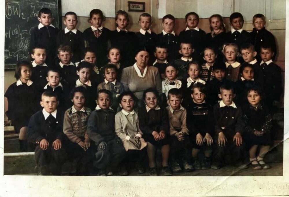 На фото я в первом классе в середине на верху, под табличкой двери.