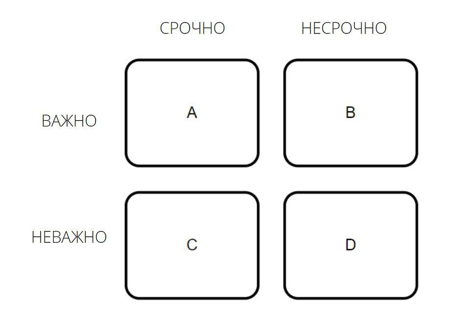 Тут надо лишь понимать, куда какие дела относить. От дел из квадрата D нужно избавиться. Либо сделать при наличии свободного времени.