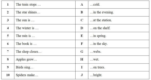 Задание 2. Соедините начало предложения (110) с подходящим окончанием (А-J).