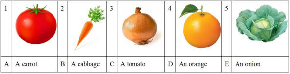 Задание 2. Соедините изображения овощей (15) с их названиями на английском (А-Е).