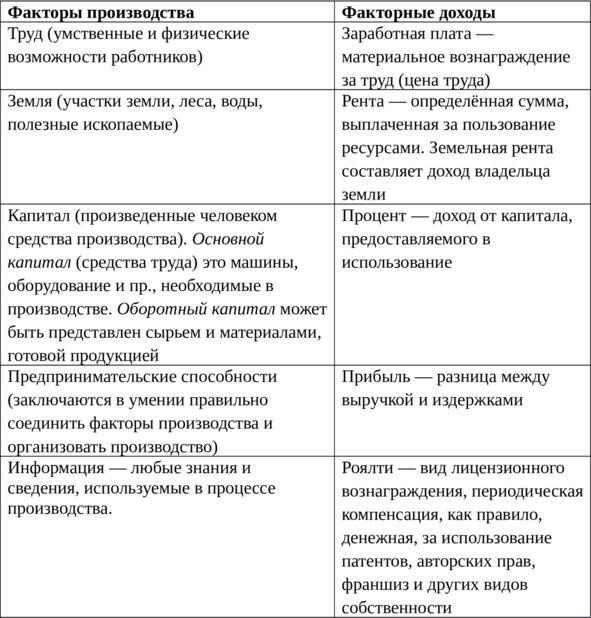 Факторные доходы это доходы от использования факторов производства.