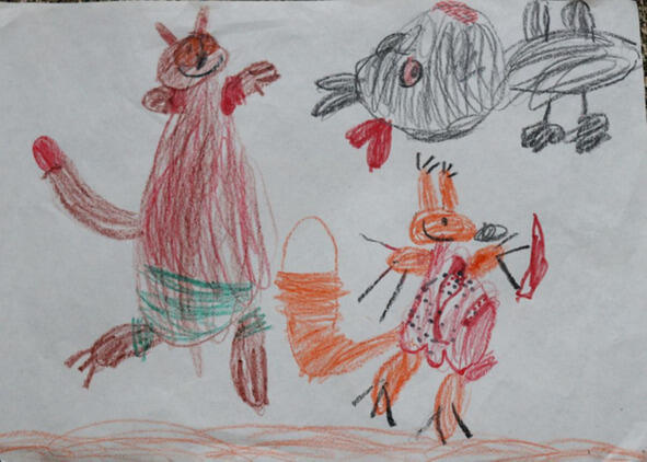 Тренируем с Махой правильный шаг левой ногой кладу перед ней след с пищалкой, и ей надо 10 раз подряд наступить на него так, чтоб пискнуло. Чтобы ей было веселее попадать ногой в след, я ей напела: «если есть шаг, должен быть след». И теперь они обе ходят и поют: «если есть тьма, должен быть свет». Ну а как же. А еще Маха наконец преодолела свой перфекционизм и стала пытаться самостоятельно рисовать. И ведь получается.