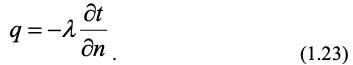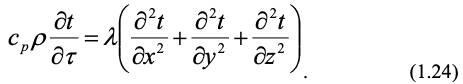 Уравнение (1.25) является следствием закона Фурье и также называется его именем. Оно определяет поле температур для молекулярного переноса тепла в рассматриваемой среде.