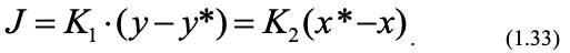 Значения концентраций на границе xs и уs трудноопределимы, поэтому записывают другое выражение диффузионного потока для коэффициентов массопереноса для первой среды К1 и для второй К2 через соответственно равновесные концентрации x* и y*.
