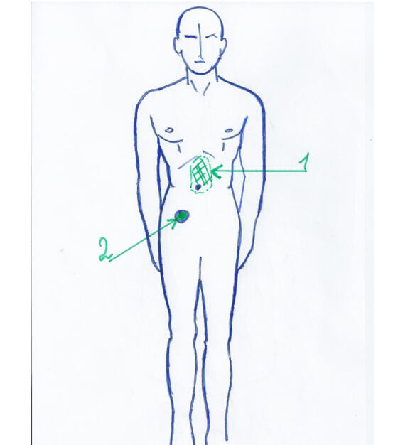 при гастрите и язве (1), при аппендиците (2)