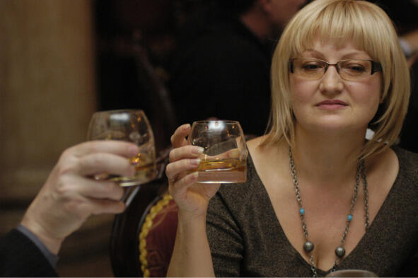 При дегустации его принято как бы это сказать? А, сплевывать. Мы, шотландцы, народ прижимистый, и говорим про себя, что у нас короткие руки, зато длинные карманы. Зачем даром переводить напиток? Поэтому первый глоток при дегустации виски идет в желудок. Я, конечно, шучу это делают не по причине скупости. Первое ощущение вкуса самое яркое, так что не стоит от него отказываться Вино принято рассматривать на цвет. Для виски это не имеет значения, хотя, чем старее напиток, тем он темнее. Правда, производители дешевых напитков стараются искусственно состарить виски, добавляя в них, например, карамель.
