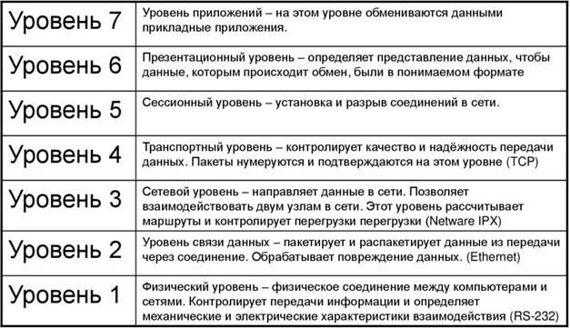 Каждый уровень представляет несколько услуг (операций), подготавливающих данные для доставки по сети на другой компьютер.
