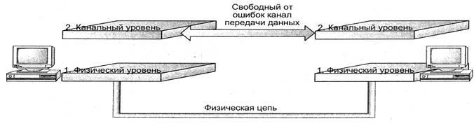 Рис. 3.10. Уровень канала передачи данных устанавливает соединение между двумя устройствами, обеспечивая передачу данных без ошибок
