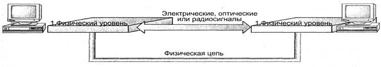Рис. 3.9. Физический уровень создает физическую цепь для передачи электрических, оптических или радиосигналов