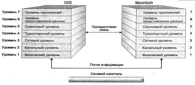 Каждый уровень стека протоколов на одном компьютере сообщается с подобным уровнем (или партнером) на другом. Взаимодействовать могут даже компьютеры с разными операционными системами, если они используют одинаковые стеки протоколов.