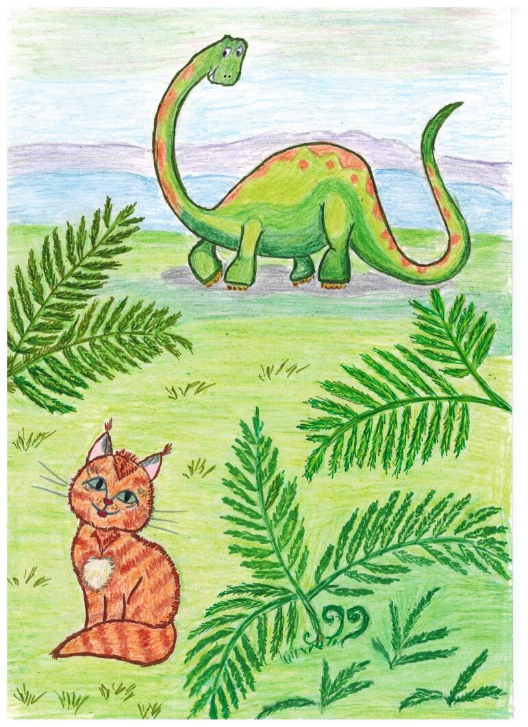 Наша чудесная пожарная бригада тем временем подъехала к дымящемуся корпусу научного исследовательского института. Немедля ни минуты, пожарные выпрыгнули из автомобиля и забежали в здание. Мистер Смит уже вывел всех ребят на улицу и обдумывал, как же потушить свою разработку, ведь это не так просто. Машина времени это вам не сарай. Всё же мистер Томас и Вилли, бросились без разбору тушить всё что попадётся под руку, и, сами того не зная, очутились у главной разработки мистера Смита, которая ни с того, ни с сего запустила в работу обратный отсчёт и наши герои оказались в Мезозойской эре в самой середине Мелового периода. Признаюсь, я сам путаюсь в эрах существования динозавров, чего не скажешь о моём шустром сыне, одно могу сказать, вокруг растерянных мистера Томаса и Вилли бродили огромные диплодоки, которые были явно чем-то напуганы. Наши пожарные герои уже подумали, что животные испугались, увидев человека и кота, однако услышав страшный рёв за горой, сразу изменили своё предположение. Мистеру Томасу будто это всё снилось. Он стоял с пожарным гидрантом в руках в Мезозойской эре, а кот Вилли, с ручным насосом стоял за мистером Томасом и недоумевал не меньше, так же предполагая, что это сон.