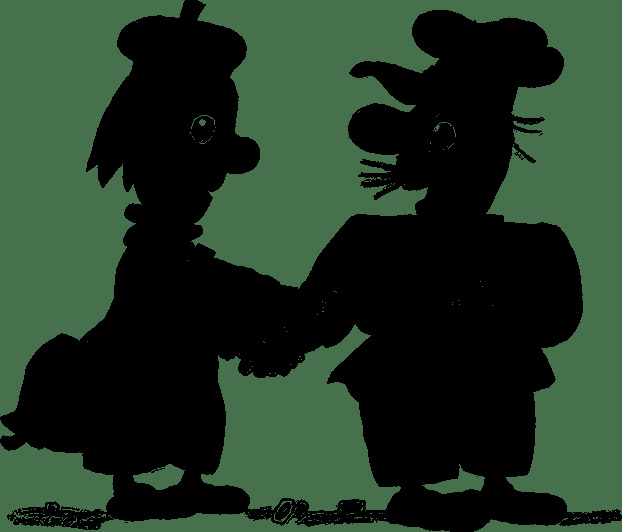 И точно: в углу послышался писк, какая-то возня, и из норки на пол выбрались два серых мышонка. Они деловито отряхнулись, вытащили из норки белый флажок и барабан, построились в шеренгу и пошли. Под барабанный бой они подошли к человечкам и остановились.
