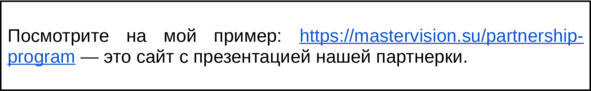 Она называется «страничка с презентацией». Вы делаете лендинг (одностраничный сайт), где приглашаете людей присоединиться к вашей партнерской программе.