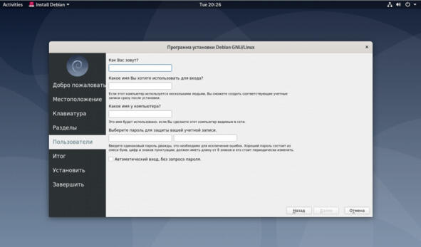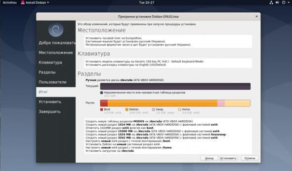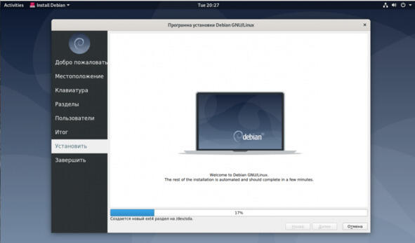 Установка Debian (с GUI) представлена на рисунках 4256.