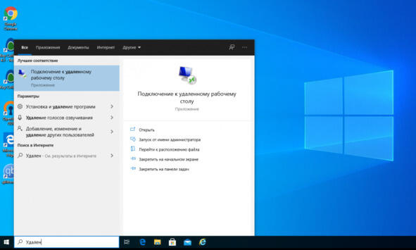 В Windows открываем поиск и находим подключение к удалённому рабочему столу (рисунок 102).